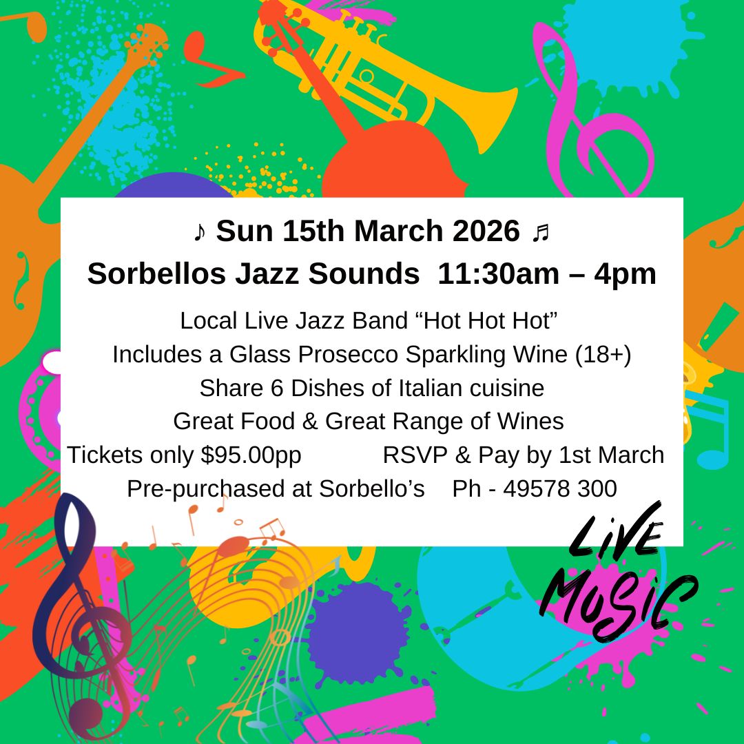 Whether you are looking for deliciously prepared seafood, a tender steak or want to select from the large range of pizzas or pastas, Sorbellos can cater for everyone with delicious & affordable Italian inspired dishes. We can cater for Vegetarian, Vegan, Dairy Free, Gluten Free & most dietary needs, please ask our friendly staff for assistance with any modifications.